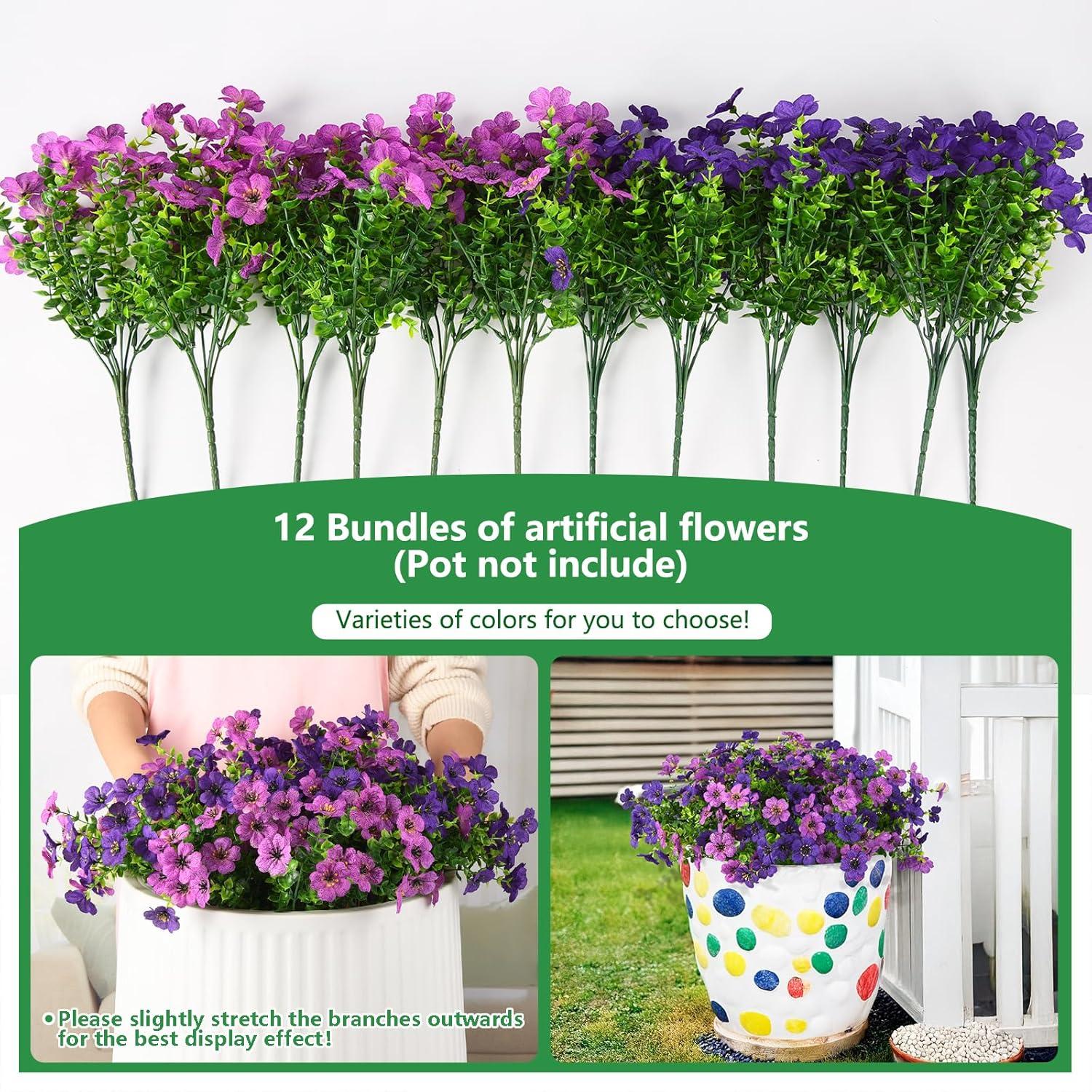 Artificial Fake Fall Flowers for Outdoor Decoration, 12 Bundles Faux Silk Daisy Artificial Fall Flowers Mums Outside UV Resisitant Planter Pot Front Porch Garden Patio Home(Deep Purple+light Purple)