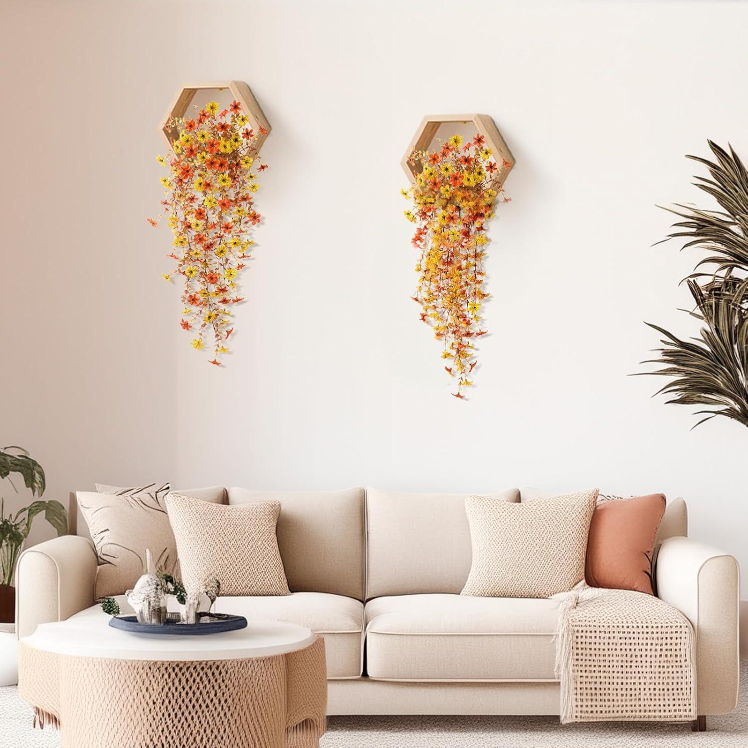 Stunning Fake Flowers for Outside: The outdoor faux plants include in 2 bundles of artificial daisy flowers,specifically designed for hanging or front porch decorations.Each branch is full of flowers and leaves