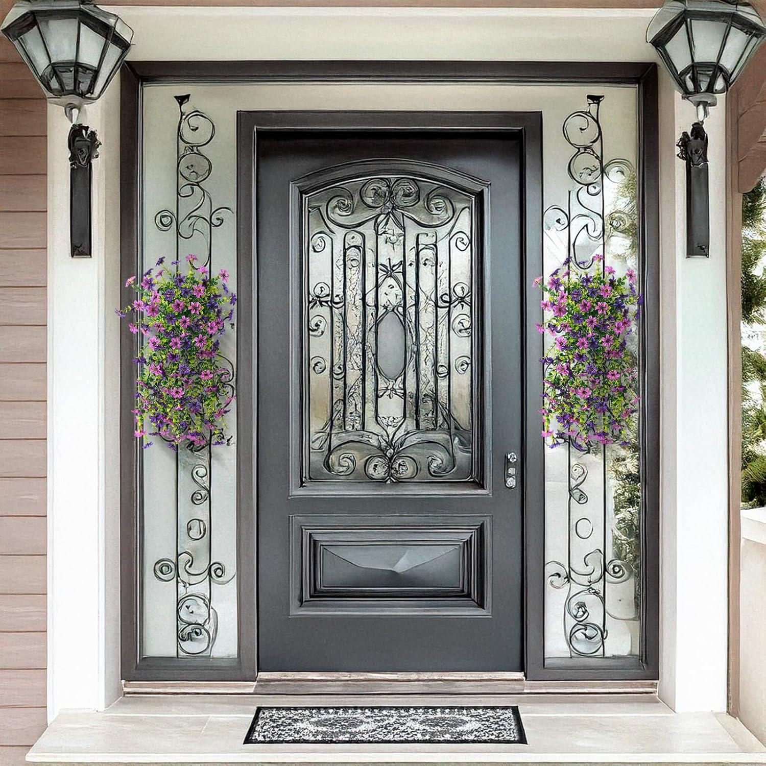 Stunning Fake Flowers for Outside: The outdoor faux plants include in 2 bundles of artificial daisy flowers,specifically designed for hanging or front porch decorations.Each branch is full of flowers and leaves