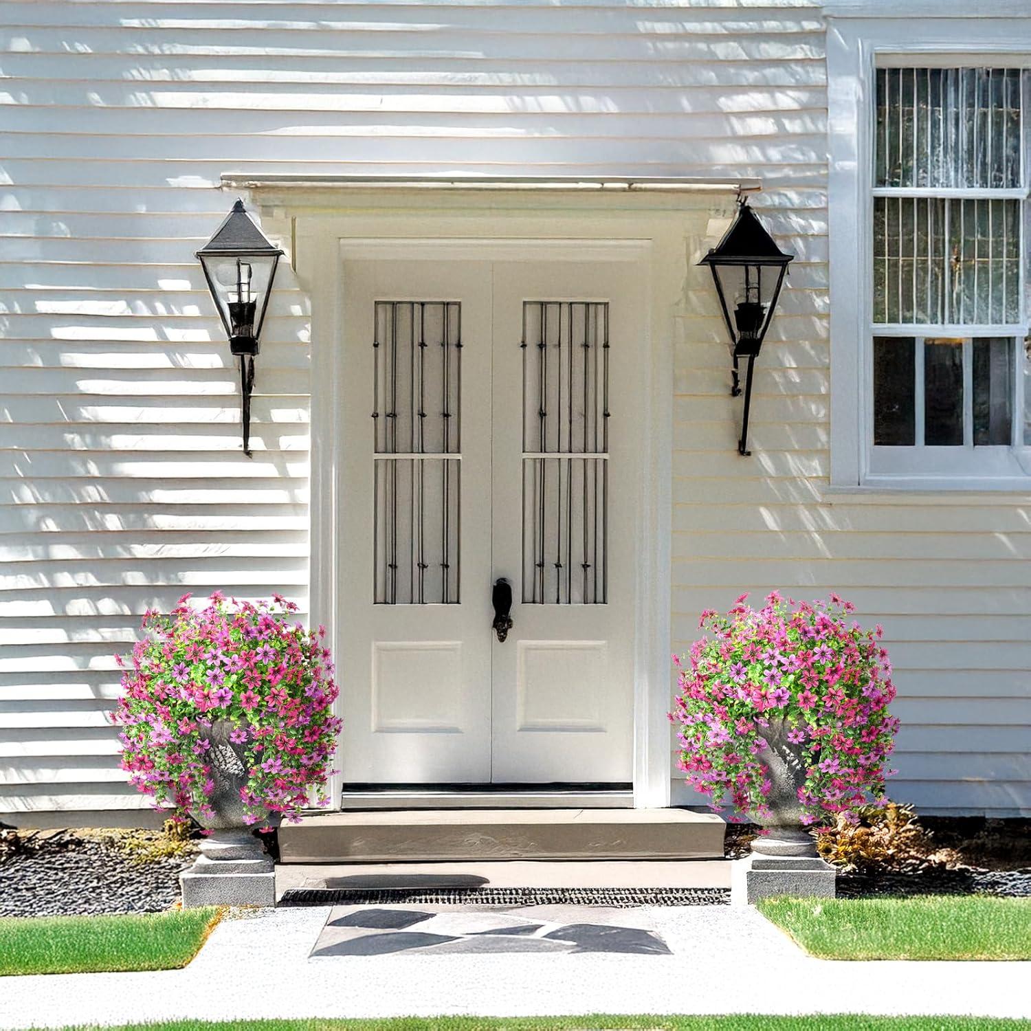 Artificial Flowers for Outdoors: The UV resistant artificial outdoor plants are made of high quality silk cloth, which is UV and all weather resistant.Transform your home with the exquisite hanging flowers vines,natural beauty into everywhere
