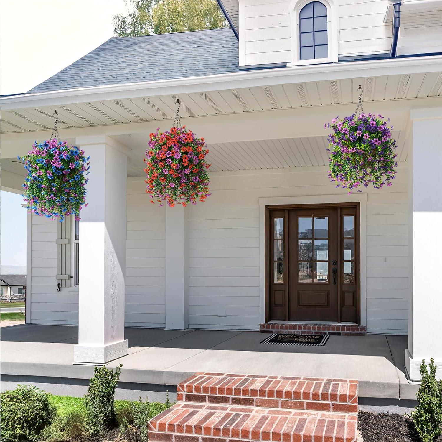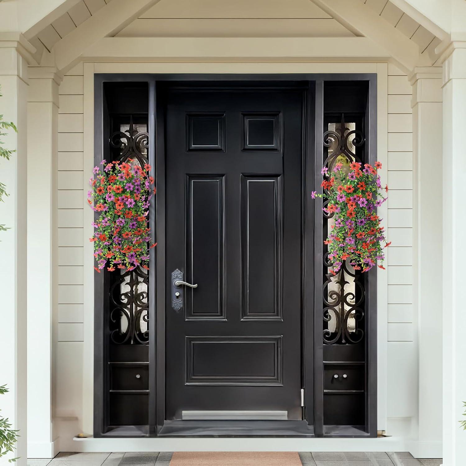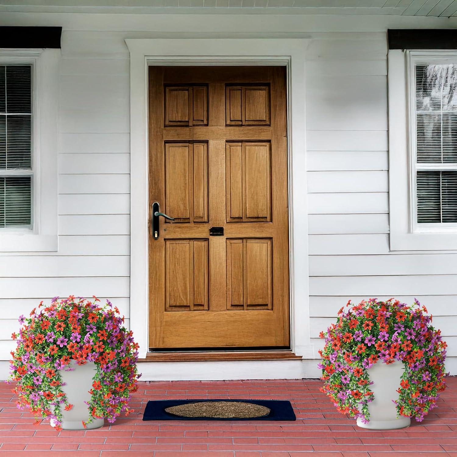 Stunning Fake Flowers for Outside: The outdoor faux plants include in 2 bundles of artificial daisy flowers,specifically designed for hanging or front porch decorations.Each branch is full of flowers and leaves
