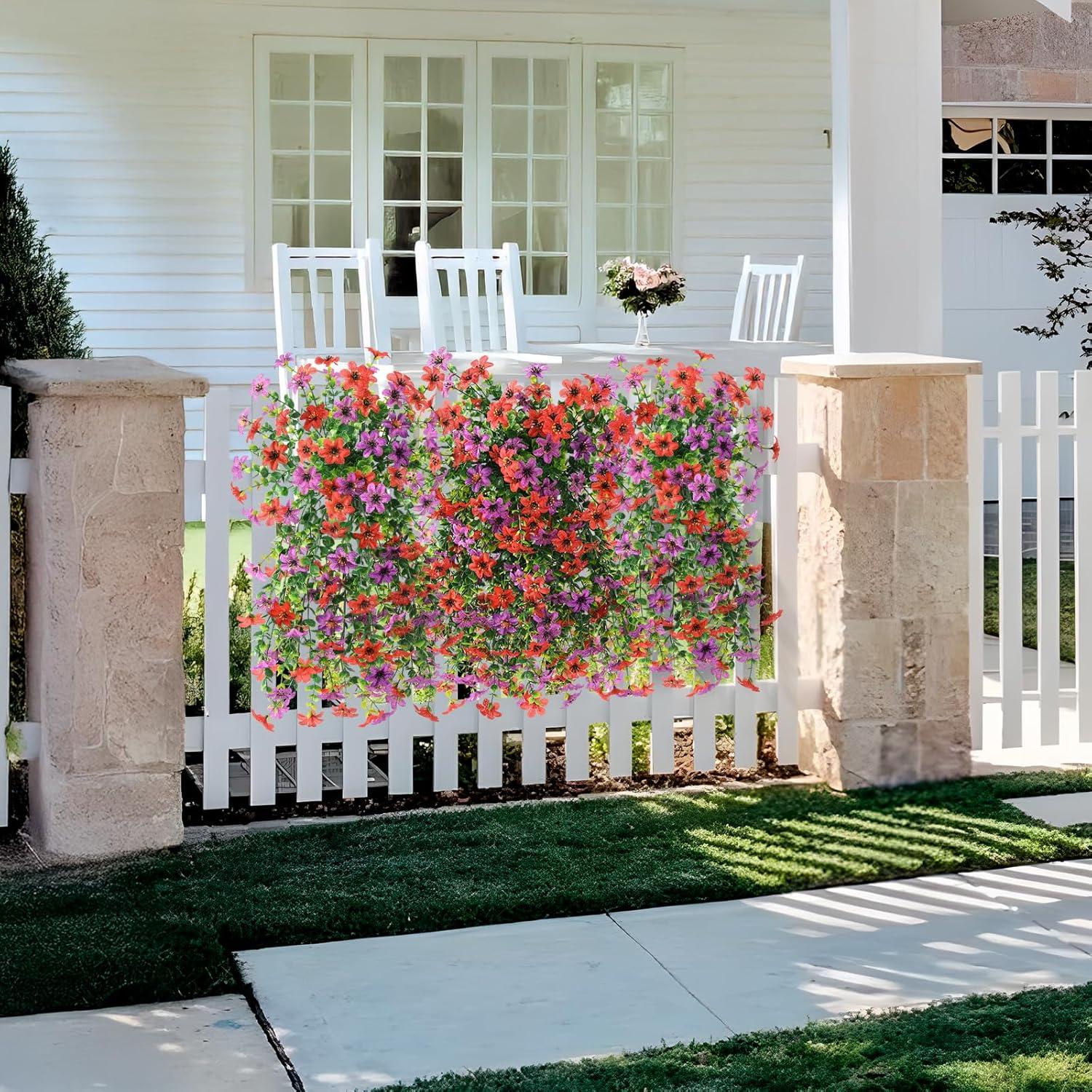 Artificial Flowers for Outdoors: The UV resistant artificial outdoor plants are made of high quality silk cloth, which is UV and all weather resistant.Transform your home with the exquisite hanging flowers vines,natural beauty into everywhere