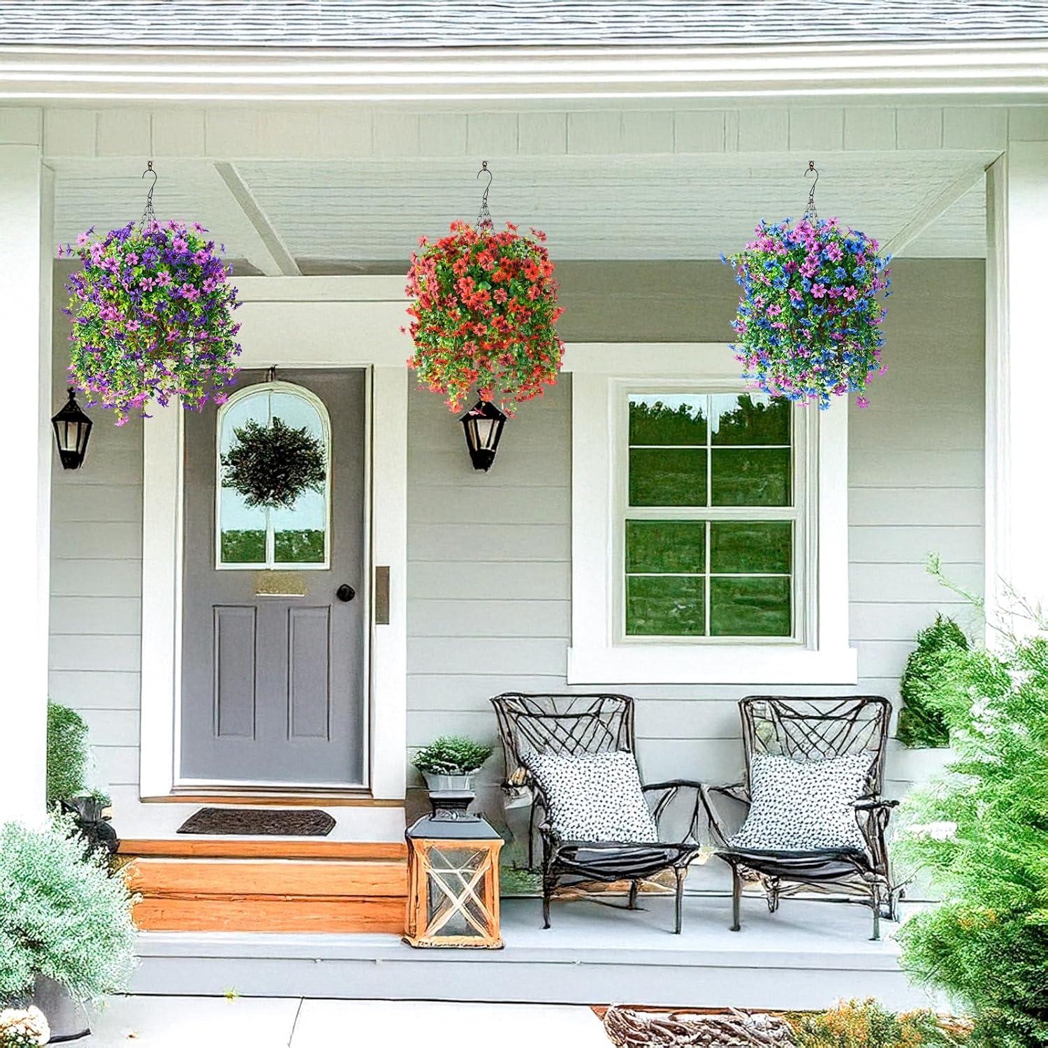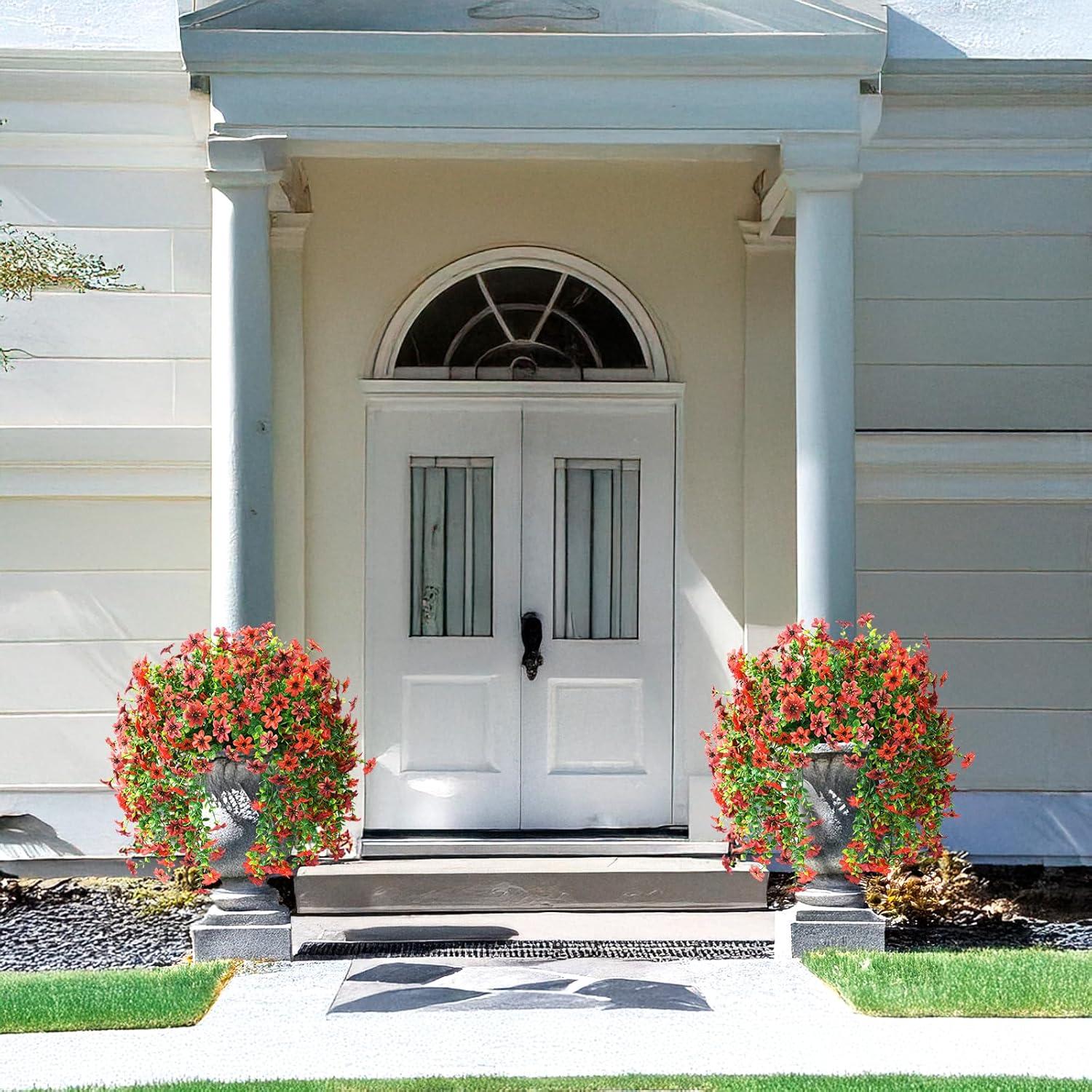 Stunning Fake Flowers for Outside: The outdoor faux plants include in 2 bundles of artificial daisy flowers,specifically designed for hanging or front porch decorations.Each branch is full of flowers and leaves