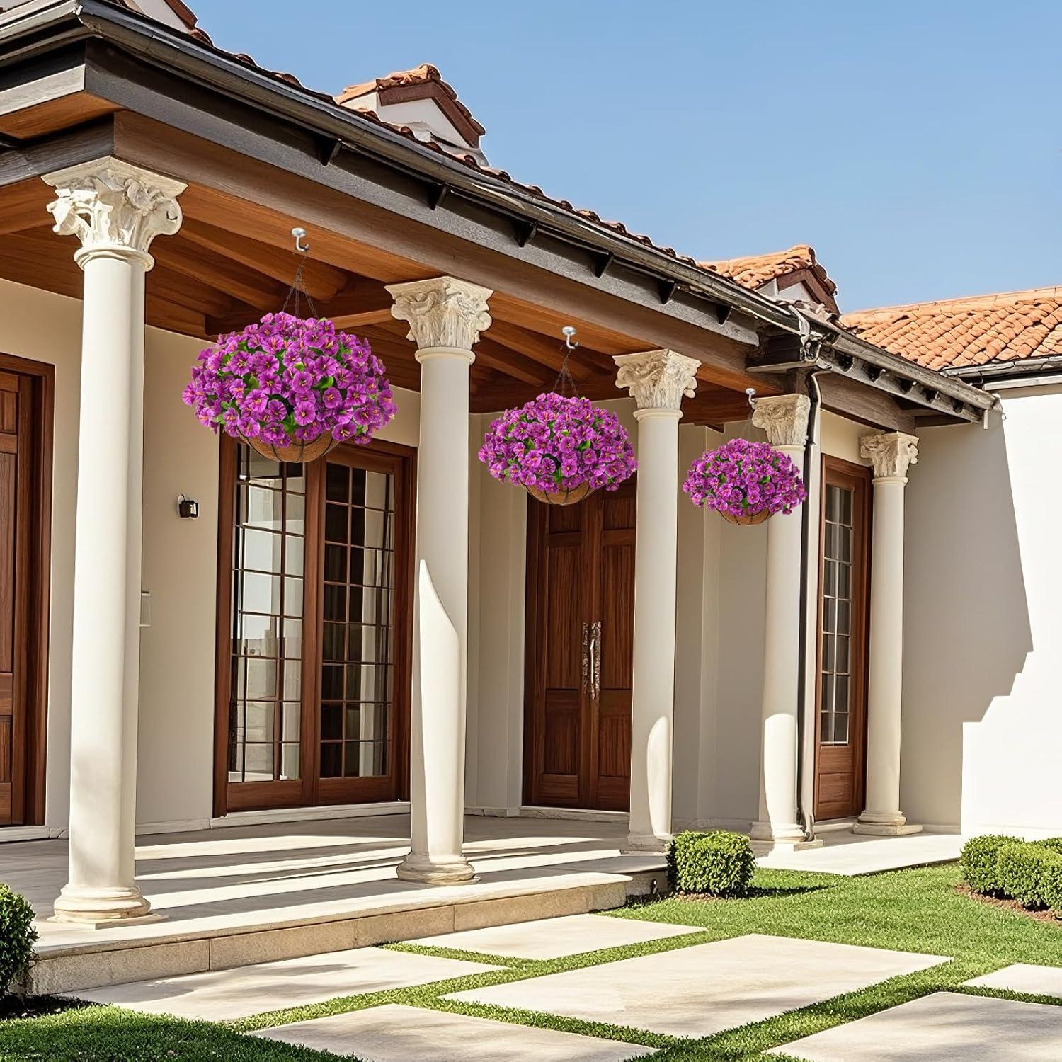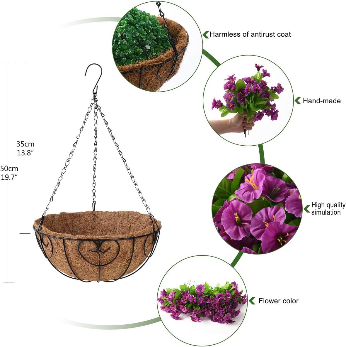 The fake hanging flowers are made of premium silk, real-like,no watering,Maintenance-free,sturdy enough in all weather to bloom all year round,keeping gorgeous colors for a long time