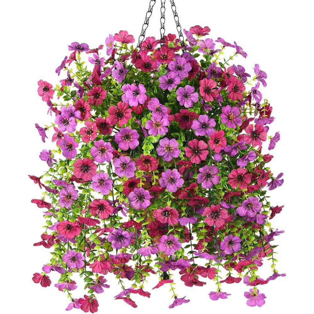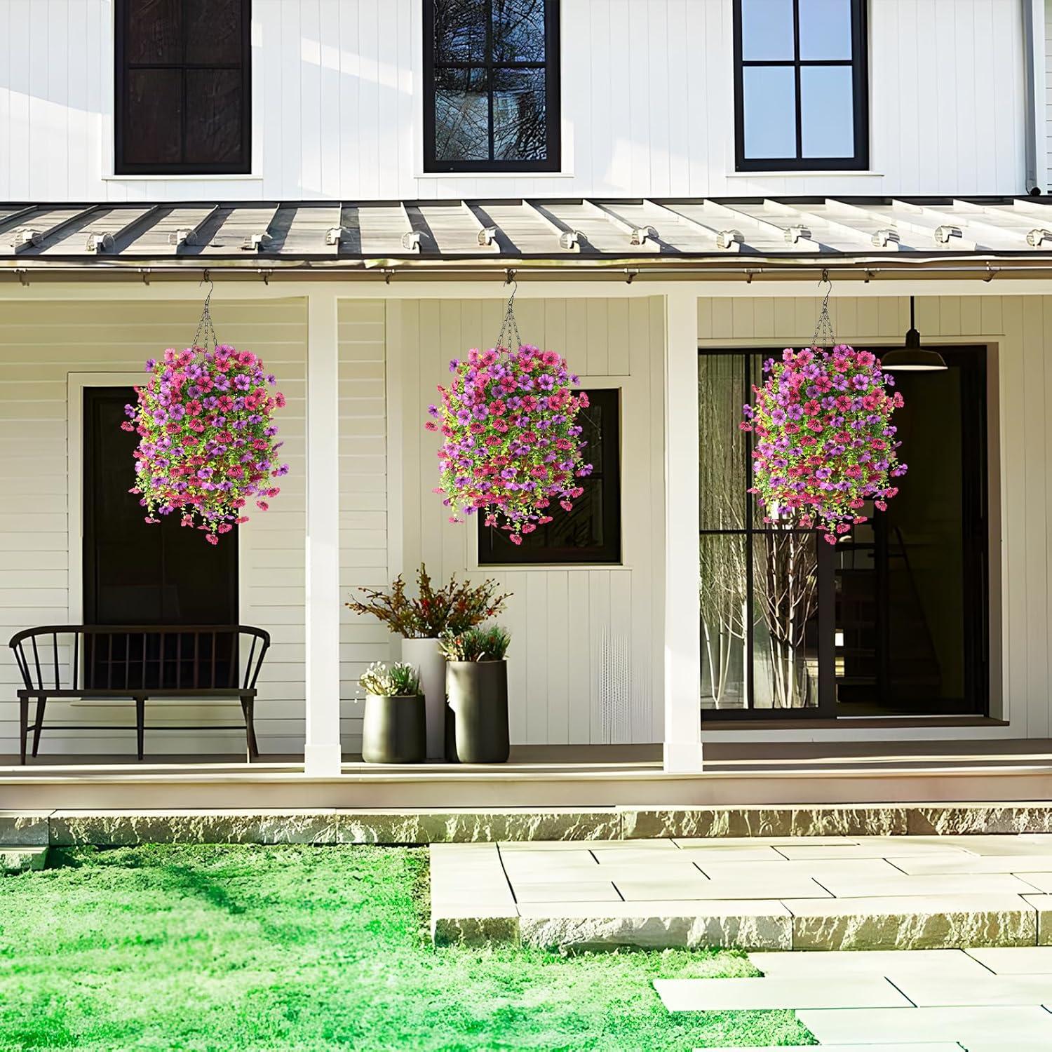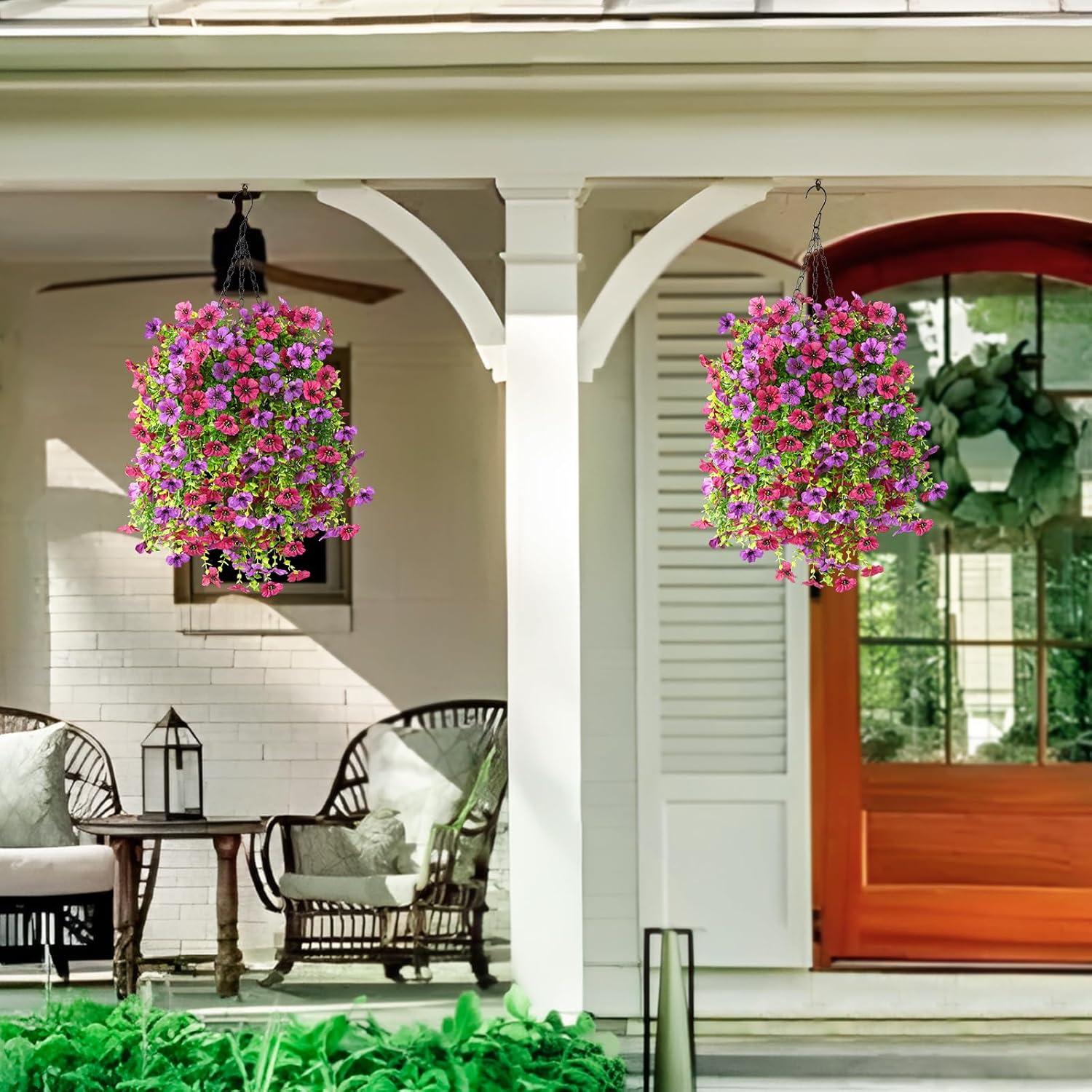Artificial Flowers for Outdoors: With life-like appearance of artificial hanging baskets for plants outdoor,these outdoor faux plants offer a stylish and authentic vibe,suitable for adorning your home,porch,garden,yard,patio,or balcony,seamlessly blending with both indoor and outdoor settings