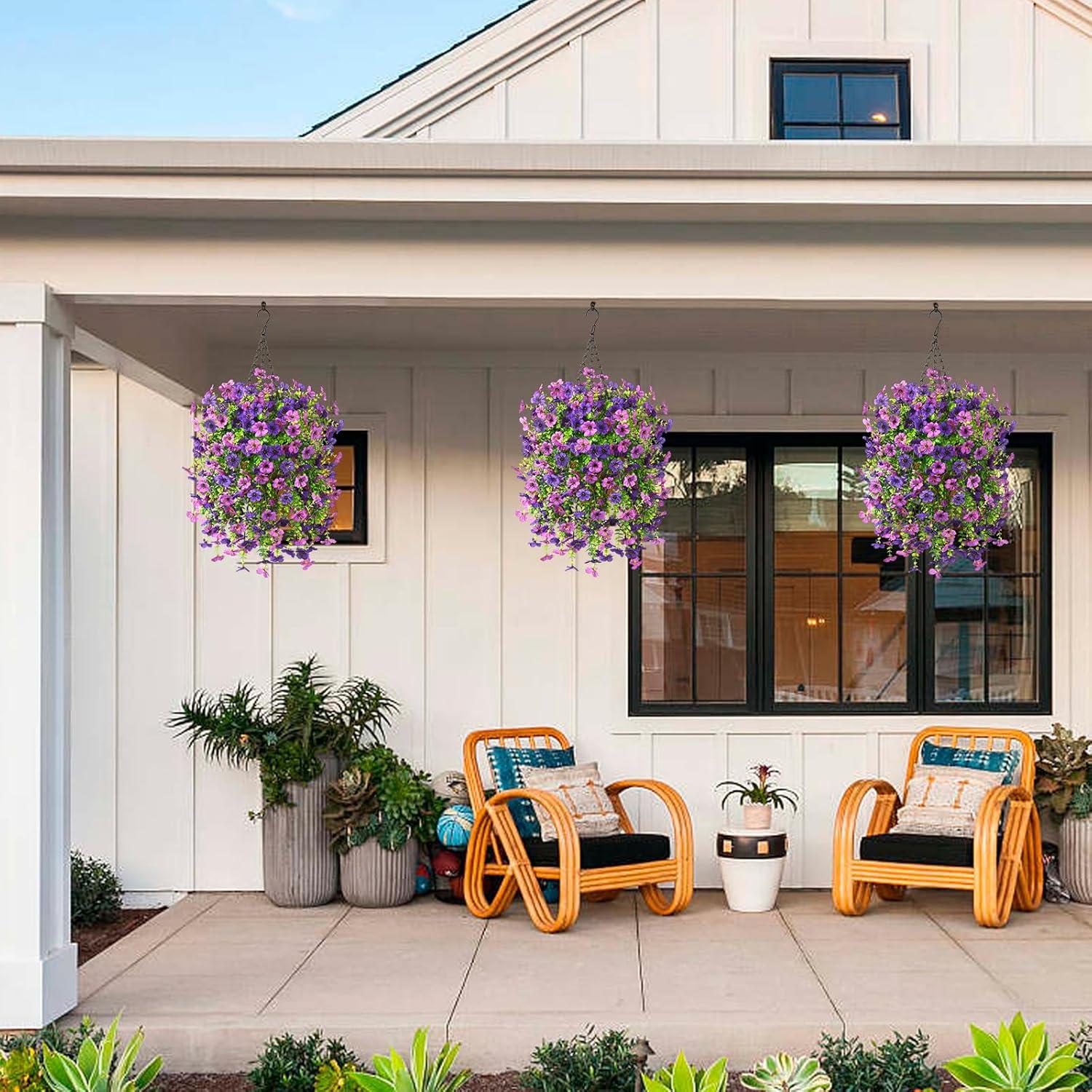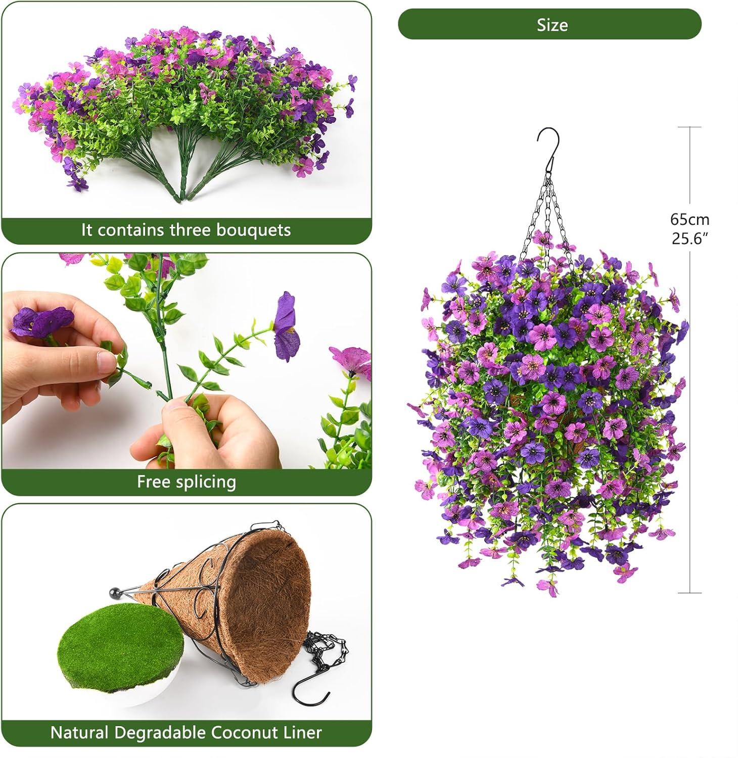Artificial Flowers for Outdoors: With life-like appearance of artificial hanging baskets for plants outdoor,these outdoor faux plants offer a stylish and authentic vibe,suitable for adorning your home,porch,garden,yard,patio,or balcony,seamlessly blending with both indoor and outdoor settings
