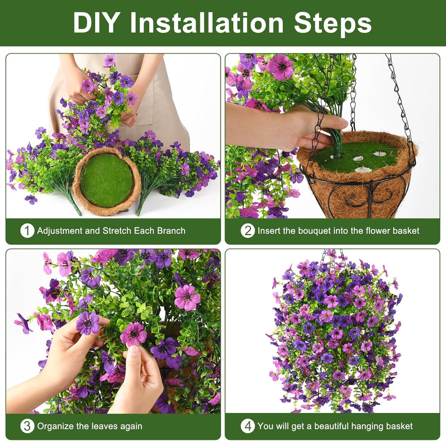Simple Assembly Artificial Hanging Flowers:The fake hanging plants can be DIY according to your needs,or refer to the pictures listed above to assemble. Please follow the stepe in product details and just a few minutes of assembly,you will get a beautiful hanging flowers basket
