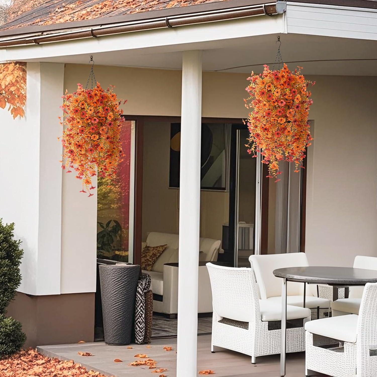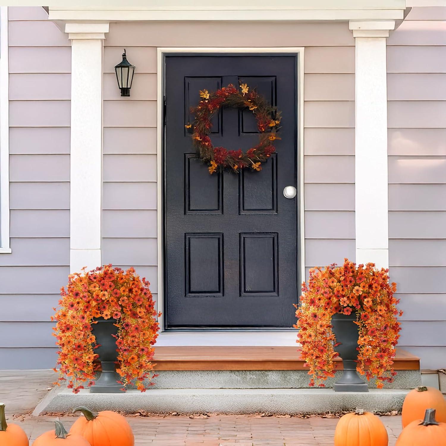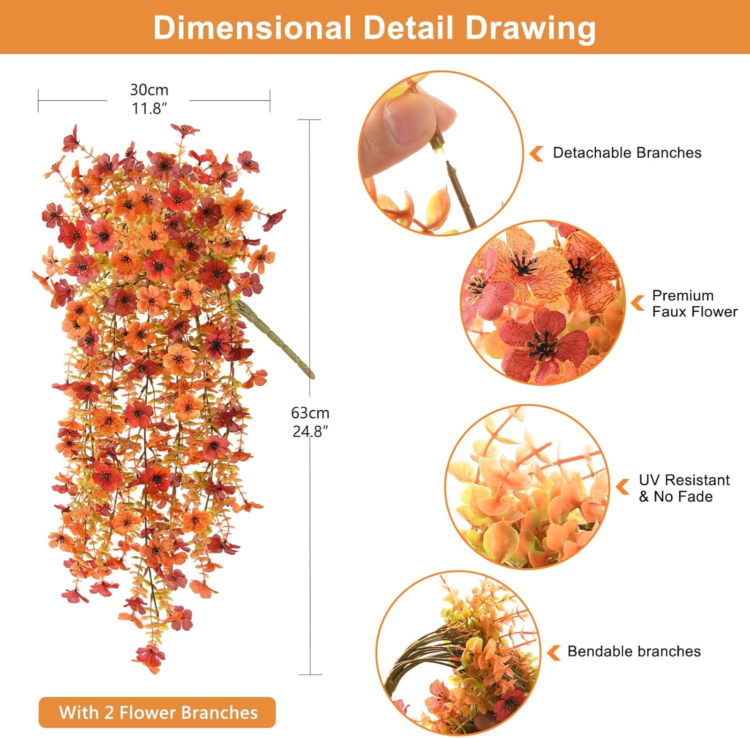 PACKAGE INCLUDED: Package includes 2 bundles fake hanging flowers. Single size: 24.8″ x 11.8″. Pot not included. Each faux fall flowers and stem can be disassembled and reassembled for easy DIY. Perfect for creating a beautiful autumn outdoor decor atmosphere