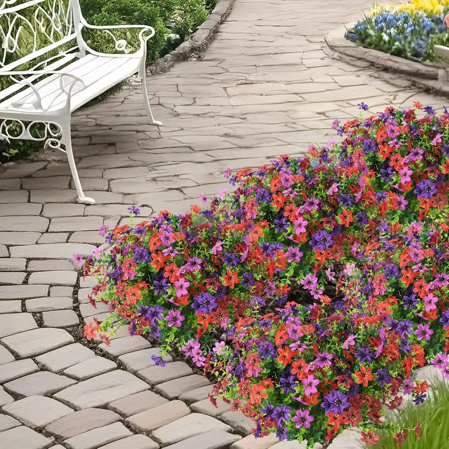 Premium Fake Mums Plants: High quality fake flowers made of premium silk material and eucalyptus leaves made of stable plastic and iron wire, UV resistant no fade, water resistant, all-weather use. Our mums artificial flowers outlasts real plants in 100°F+ heat, providing long-lasting decoration for your outdoor garden, patio, door steps
