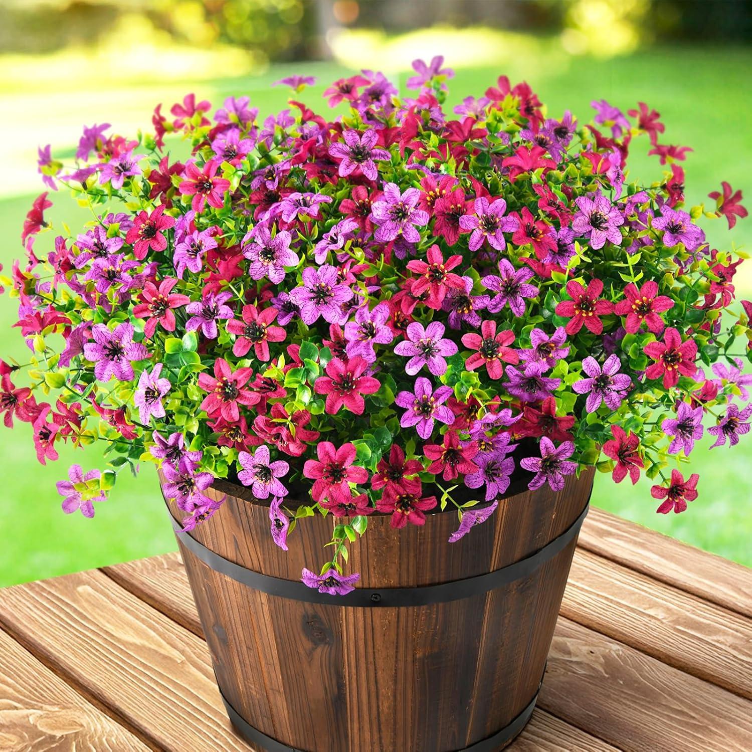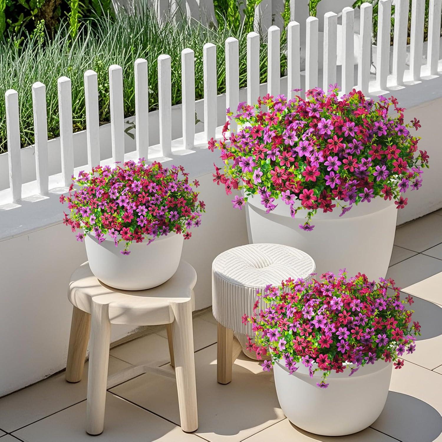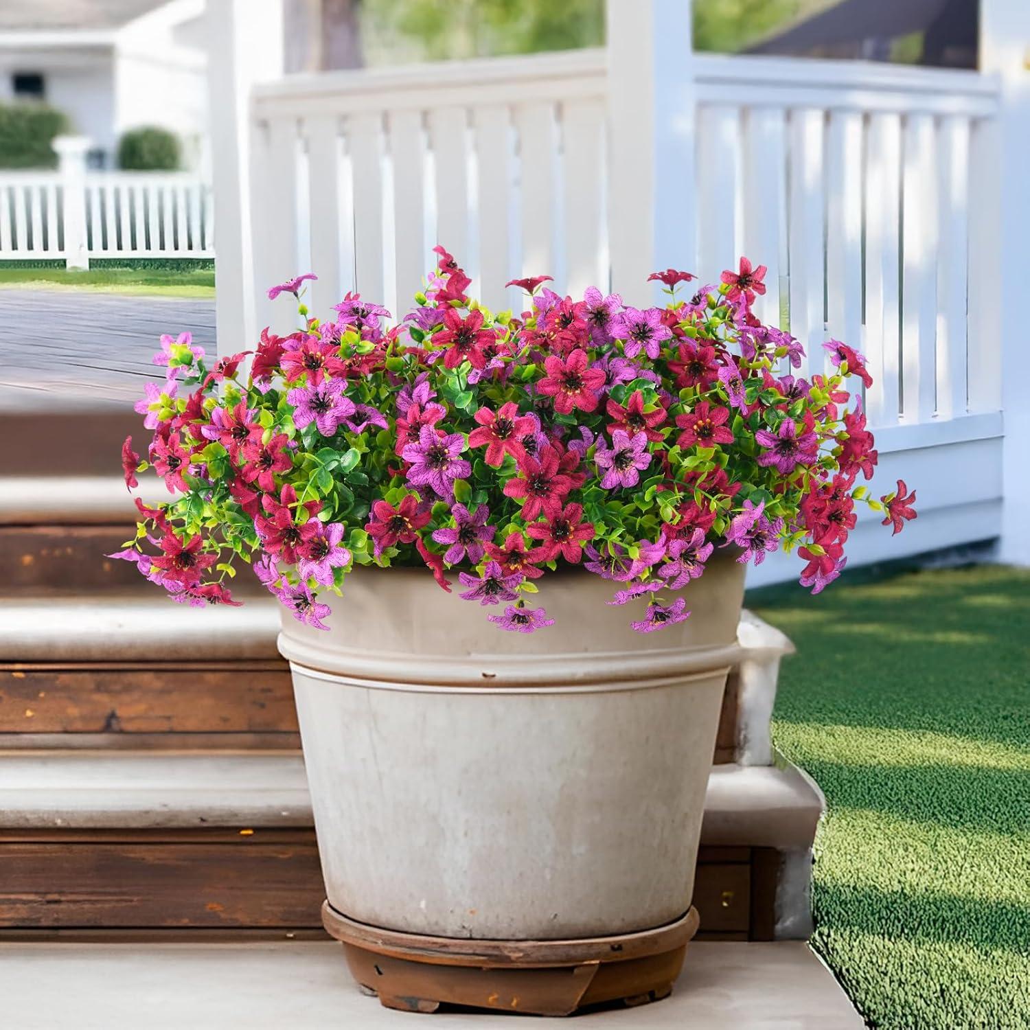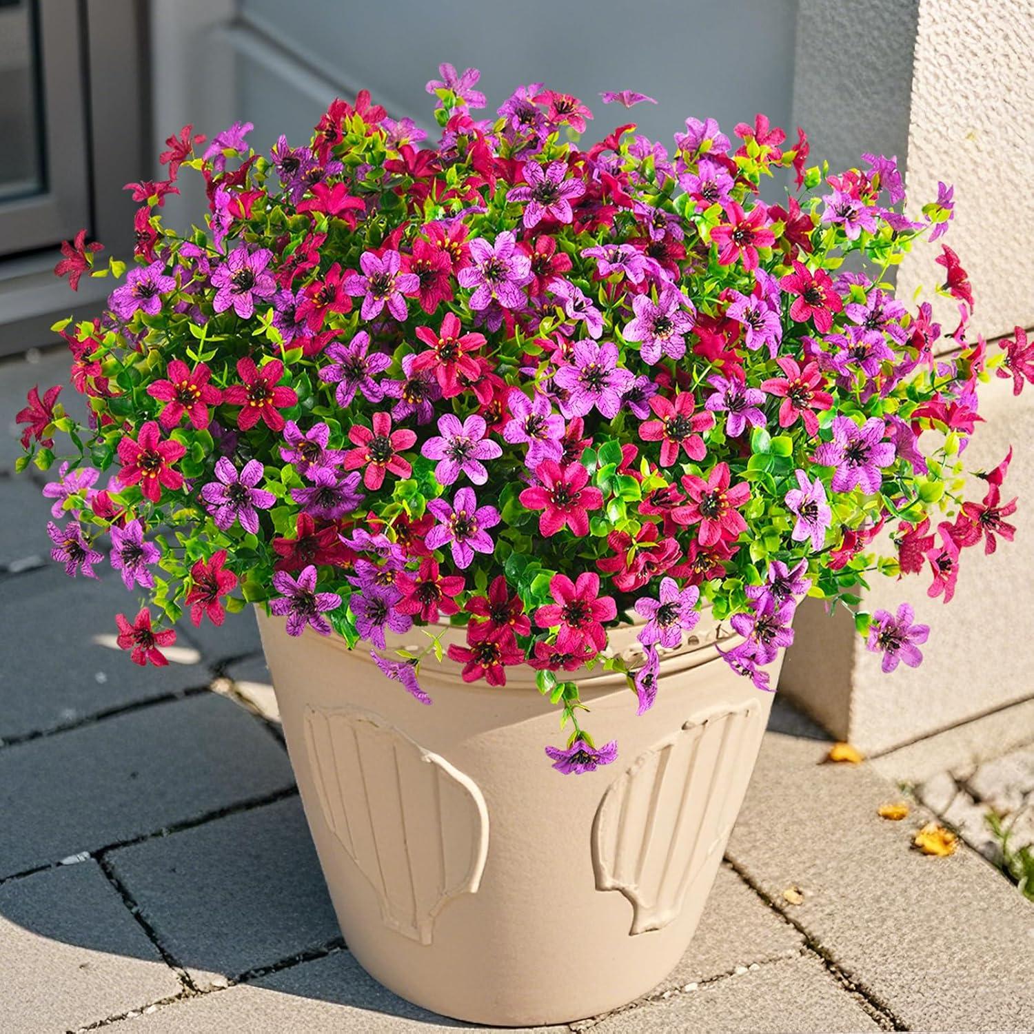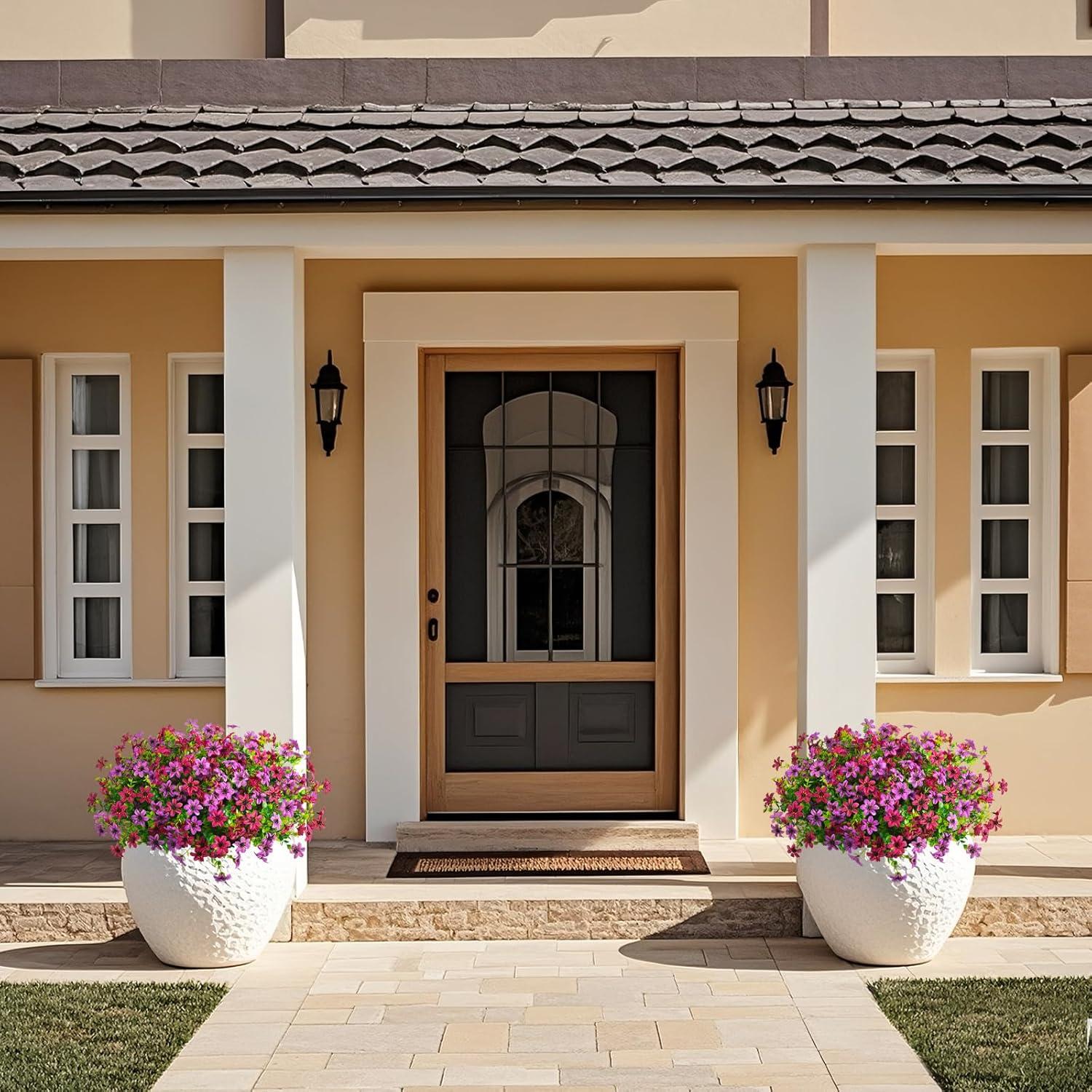 Premium Fake Mums Plants: High quality fake flowers made of premium silk material and eucalyptus leaves made of stable plastic and iron wire, UV resistant no fade, water resistant, all-weather use. Our mums artificial flowers outlasts real plants in 100°F+ heat, providing long-lasting decoration for your outdoor garden, patio, door steps
