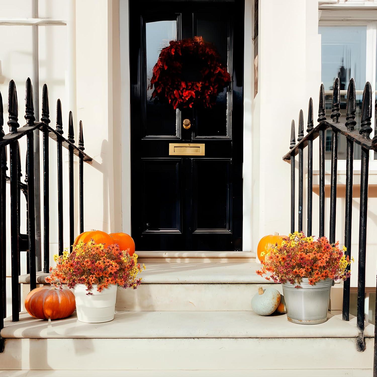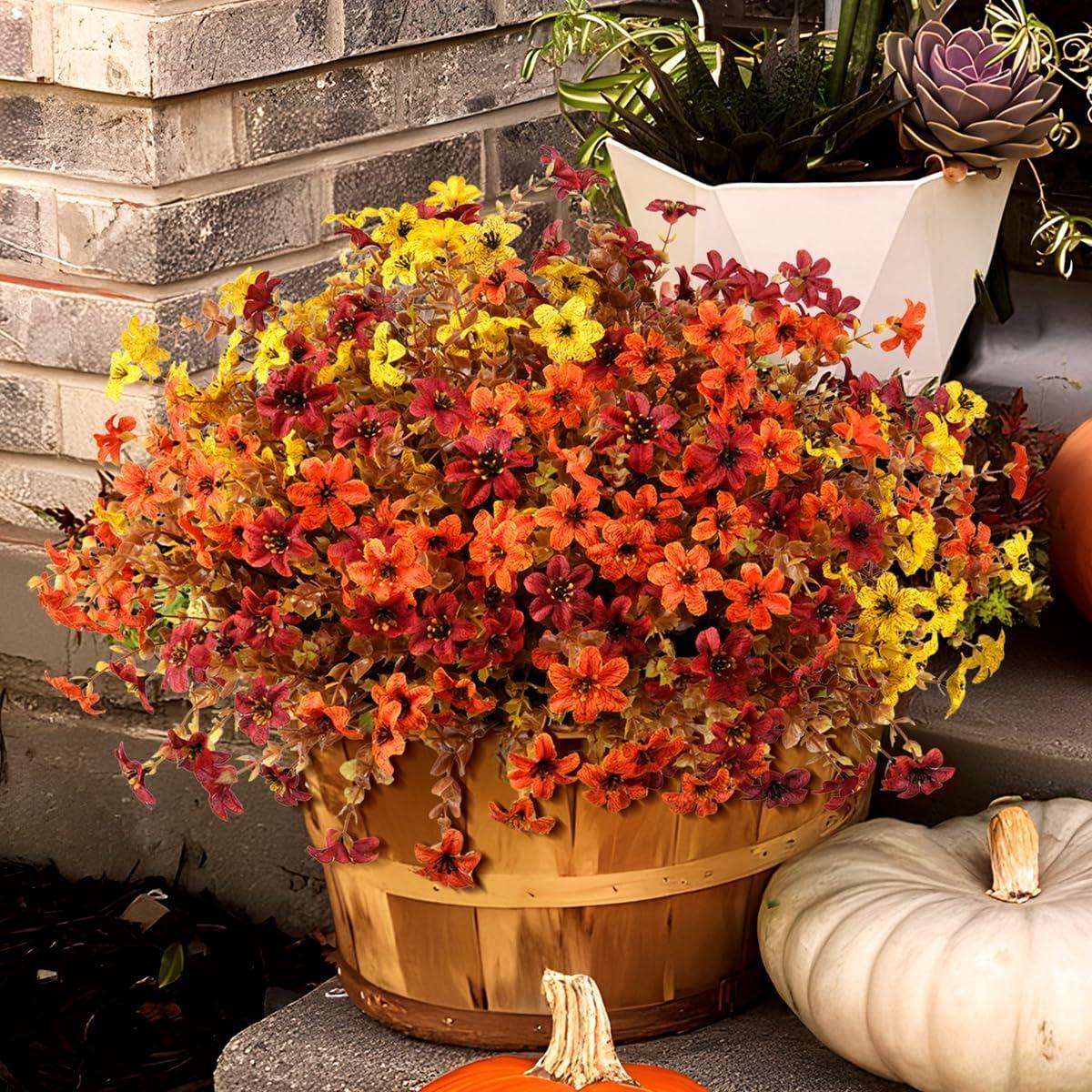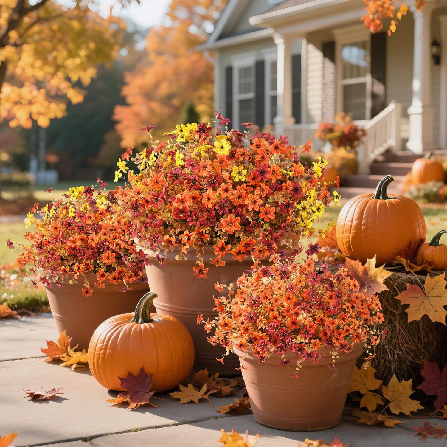 Great Indoor Outdoor Decoration: The lovely faux mums for outdoor planters, make your garden, front porch, patio, yard and windowsill unique in this autumn, and let this great fake flowers plants decorate your indoor and outside