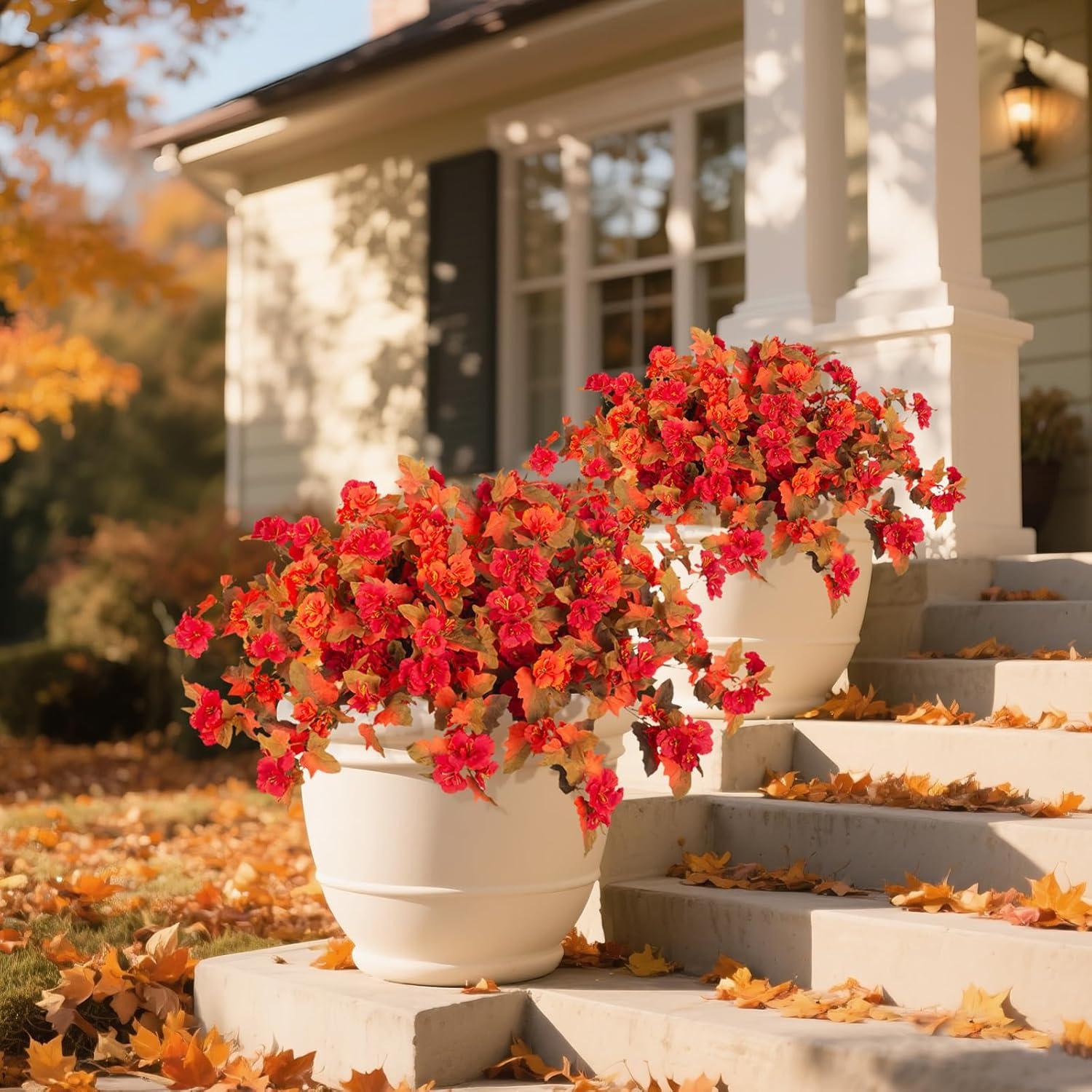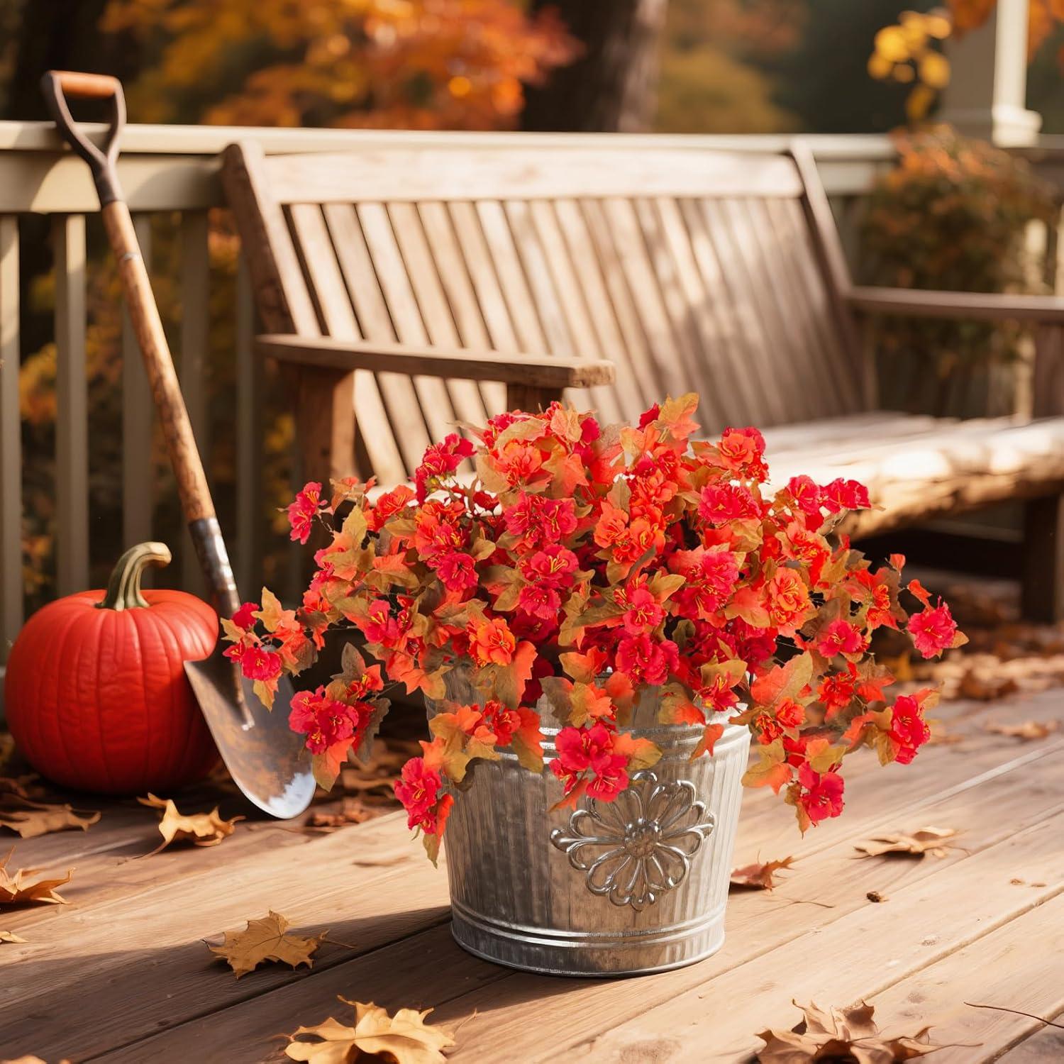 VERSATILE DECOR: Lifelike fall faux flowers make the perfect addition to your autumn decor, bringing warmth and seasonal charm to any space. Whether placed in an outdoor garden, balcony, porch, or used to brighten up an indoor living room or bedroom, these faux blooms offer long-lasting fall beauty for your home